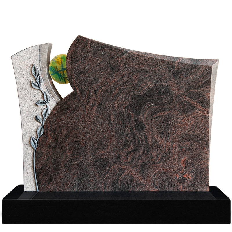 Doppelgrabstein poliert, Ornament Blätter, inkl. Glas