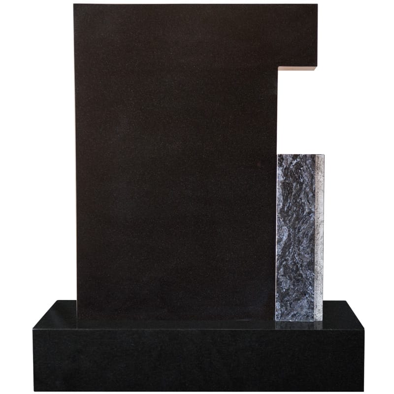 Einzelgrabstein poliert, Ornamentband in Aluminium