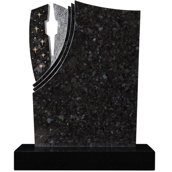 Grabstein poliert, Fächer poliert, Ornament Sterne und Strahlen