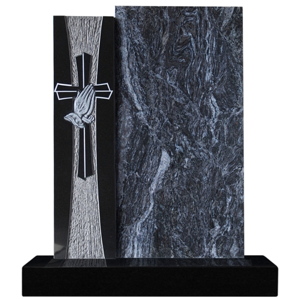 Einzelgrabstein poliert, 2-teilig, Ornament Kreuz mit betende Hände