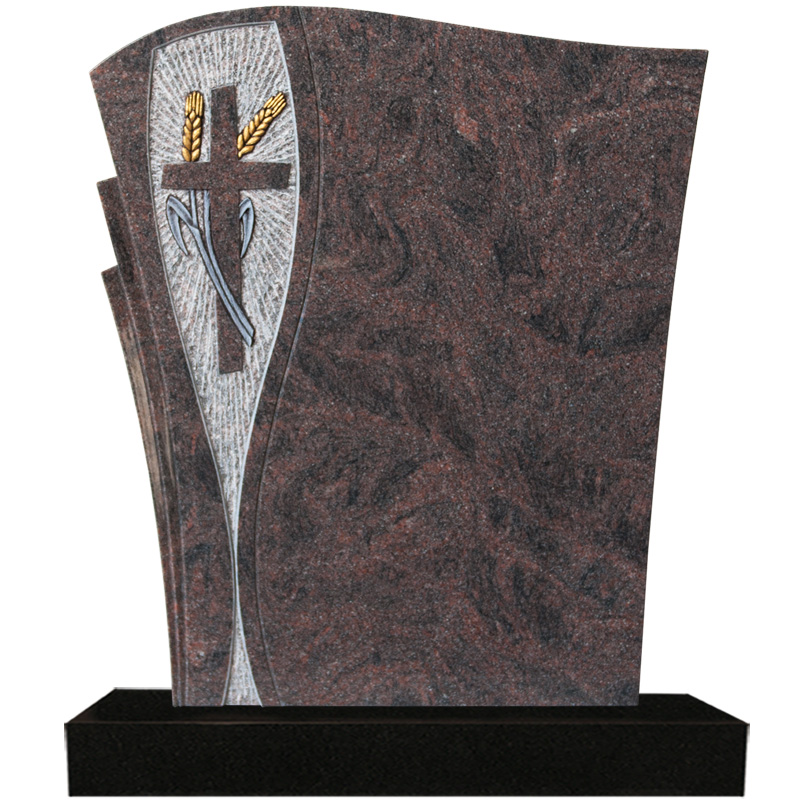 Einzelgrabstein poliert, Fächer poliert, Ornament Kreuz mit Ähren