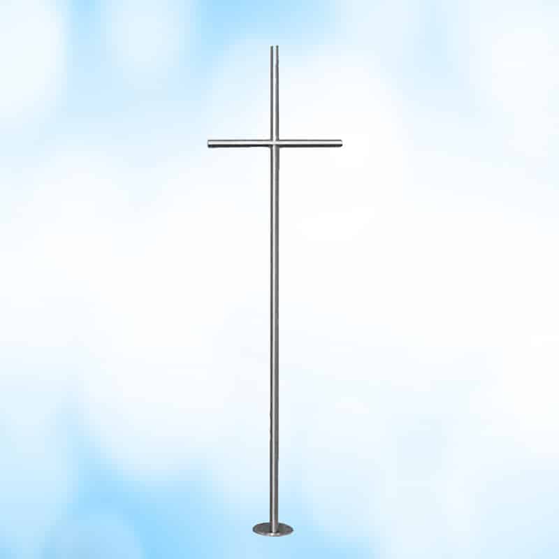 Edelstahlkreuz – Rundstahl gebürstet, mit Standfuß