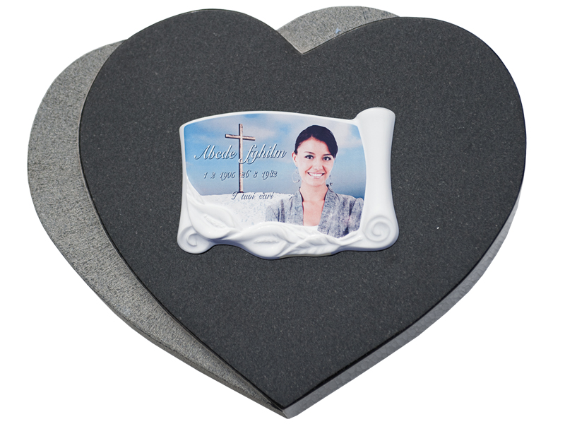 Porzellanfoto Sonderform auf einem Doppelgranitherz