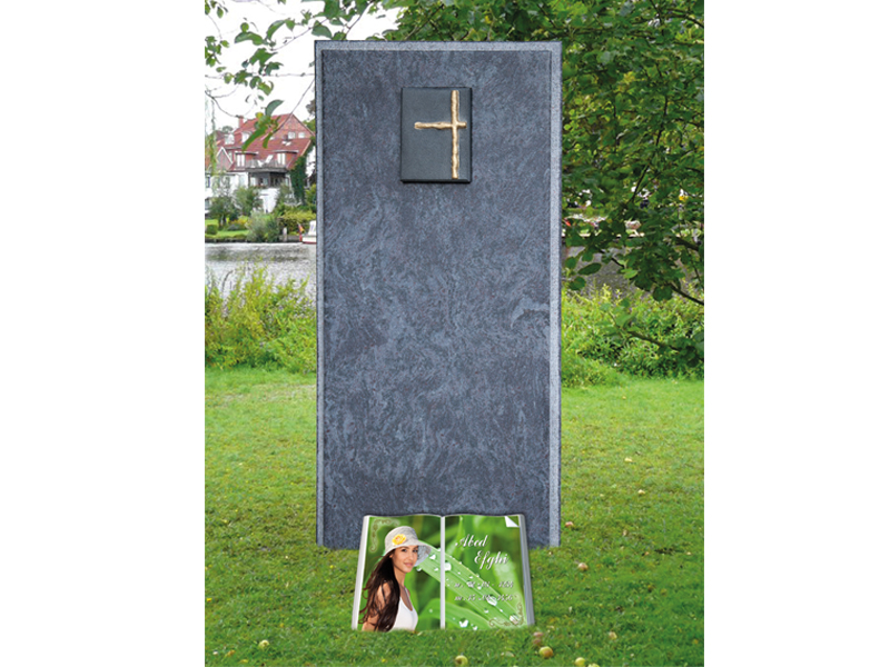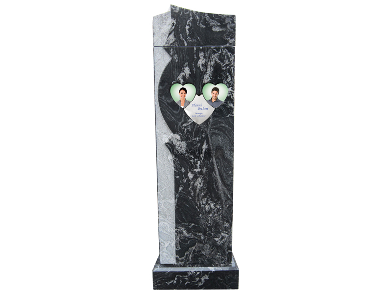 Porzellanfoto auf einem GranitherzPorzellanrolle auf einer GranitplattePorzellanfoto mit Silberrand auf einer GrabanlagePorzellanfoto mit Muschelrahmen auf einem GranitsteinPorzellan - Doppelherzsonderform auf einer UrnenstelePorzellanfoto in Buchform auf einer GranitplattePorzellanbuch vorgelegt bei einer Stele