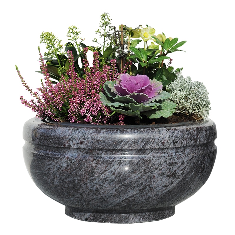 Granitschüssel poliert – inkl. Kunststoffeinsatz ohne Bepflanzung, Höhe 23-25cm | sc56